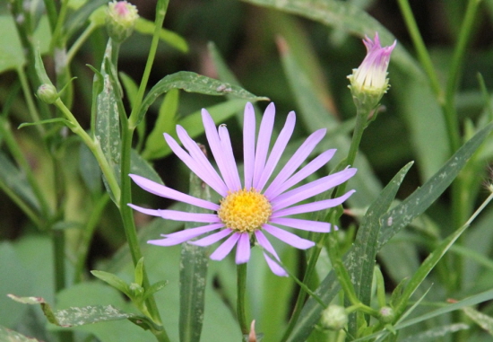 키는 50~60cm 까지 자라고 초가을에 지름이 4~5cm 의 연보라색 꽃을 피운다.
